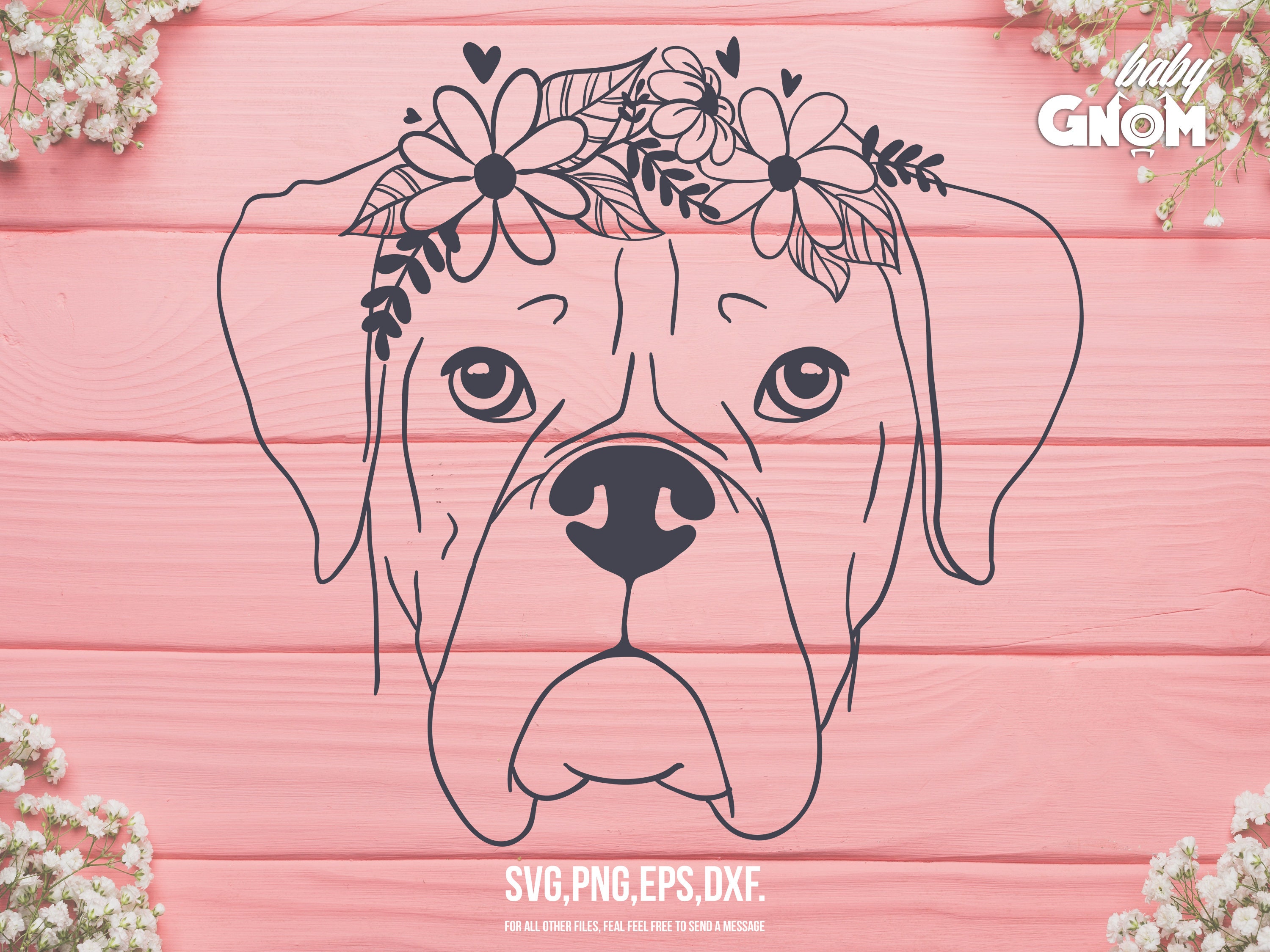 Boxer Flower Crown Svg Boxer Svg Boxer With Flowers Svg Etsy