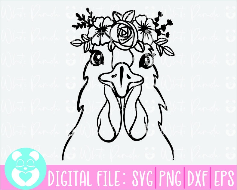 Chicken Svg Chicken With Flower Crown Svg Chicken Flower Svg Chicken Floral Svg Chicken Face Svg Animal Face Cricut File Silhouette Dxf Eps